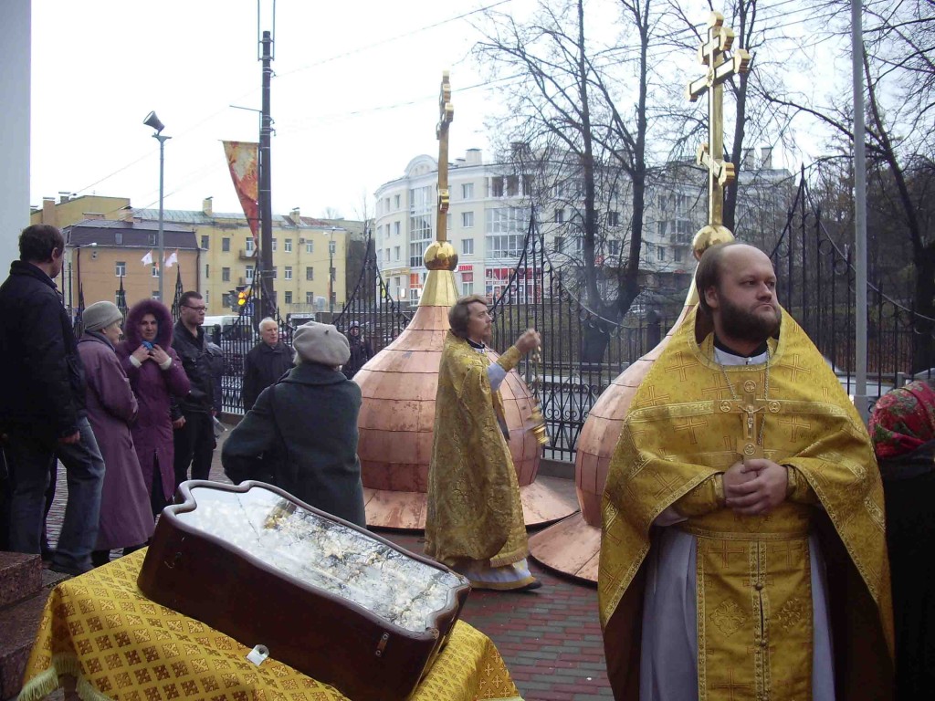 27 октября (воскресенье) состоялось торжественное освящение куполов и крестов для малых главок собора Архангела Михаила города Ломоносова. Чин освящения возглавил настоятель собора священник Павел в сослужении духовенства храма.