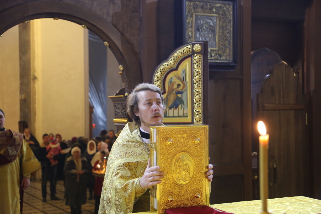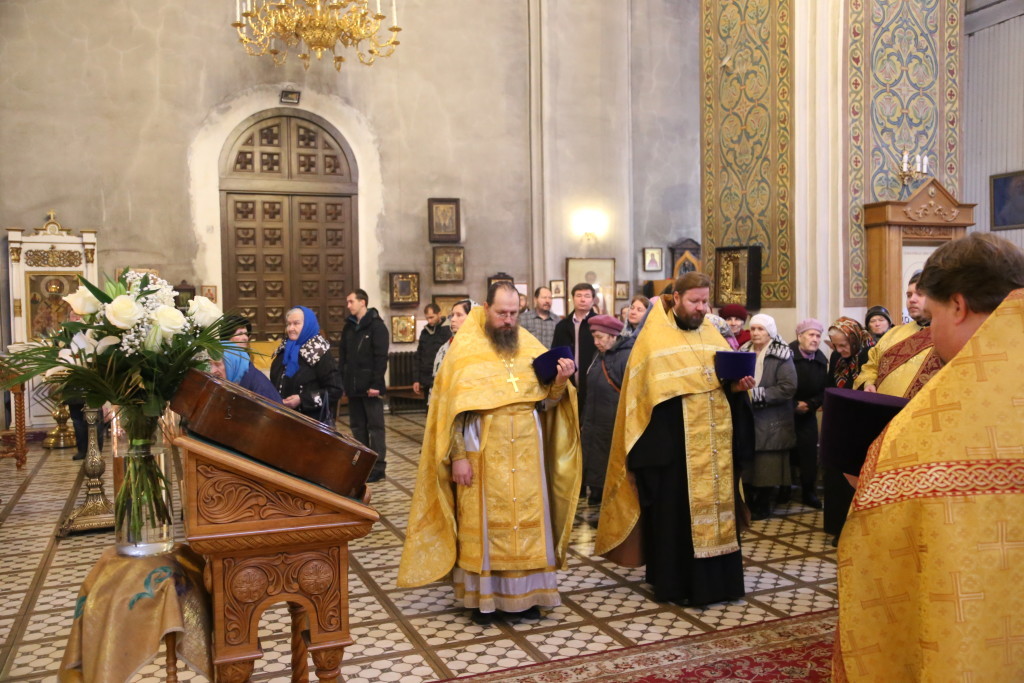 19 ноября наш настоятель протоиерей Павел Суслов отмечал 40 лет со дня рождения и день Небесного Покровителя. В этот день о. Павел возглавил служение Божественной Литургии совместно с клиром. В храме собрались многочисленные прихожане, чтобы поздравить своего дорогого батюшку. После службы был отслужен благодарственный молебен. Поздравление митрополита Санкт-Петербургского и Ладожского Варсонофия и указ о награждении серебряной медалью Святого Первоверховного Апостола Петра огласил секретарь епархиального управления протоиерей Сергий Куксевич. От лица благочиния, букет белых роз вручил благочинный Петродворцового округа протоиерей Павел Кудряшов. От лица священнослужителей и прихожан собора поздравительное слово произнес протоиерей Алексий Фофанов.Все присутствующие выразили о. Павлу искреннюю признательность за много летнее служение на благо Русской Правосланой Церкви и Отечества.