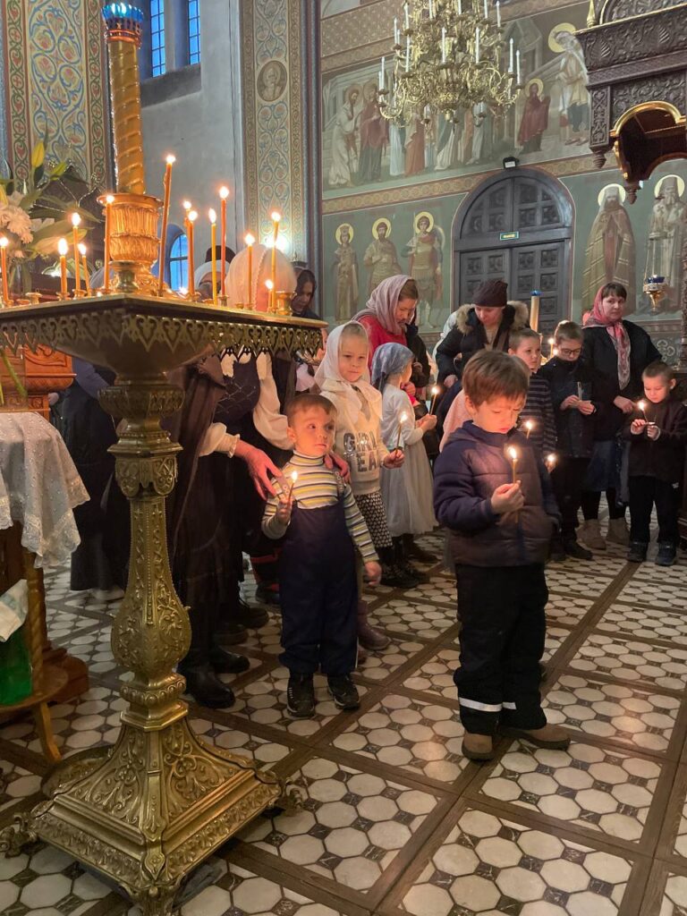 Большинство юных молящихся причастились Святых Христовых Таин, а само богослужение прошло с большим воодушевлением. Для совсем юных ребят преподаватель воскресной школы Д. Тулин давал краткие пояснение по ходу службы.