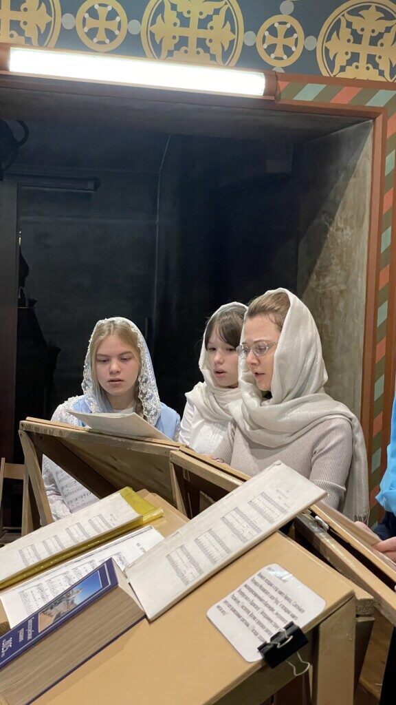 Песнопения Литургии исполнил молодежный приходской хор под управлением Т.И. Державиной. Стоит отметить, что данный хор совсем молодой, ведь создан он был только в феврале этого года!